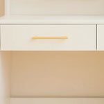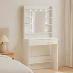 La coiffeuse MAÏA combine un style raffiné et une fonctionnalité intelligente grâce à son design moderne rehaussé de poignées dorées. Son large espace de rangement avec tiroirs et compartiments ouverts vous permet de garder chaque produit parfaitement organisé. L’éclairage LED réglable assure une luminosité toujours adaptée, idéale pour un maquillage précis en toute circonstance.